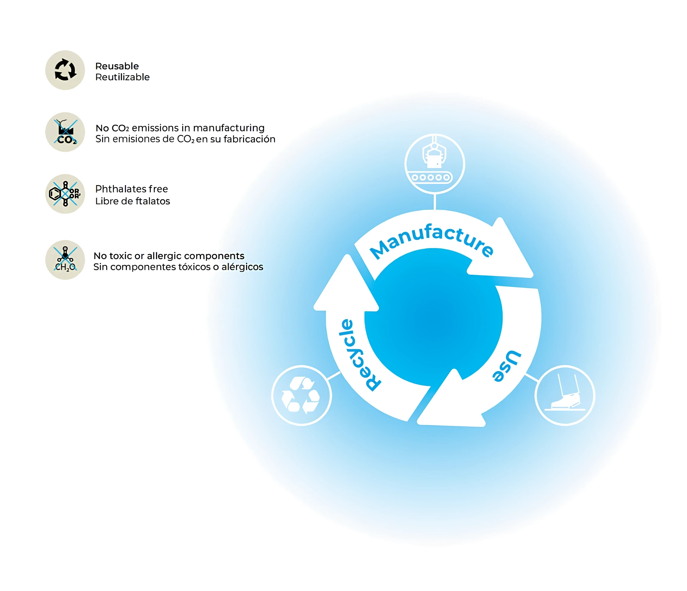 Better use of resources and less waste generation to increase sustainability and take care of the environment. This is our philosophy. We produce our floors exclusively with electrical energy from 100% renewable sources (80% from our own solar panels) generating a zero footprint in CO2 emissions and we minimize the generation of waste by reincorporating the remains of the raw materials used. The quality of our products allows them to be reused, extending their useful life, in addition to not being necessary other products in their laying on floors (such as adhesives or additional supports) during their installation